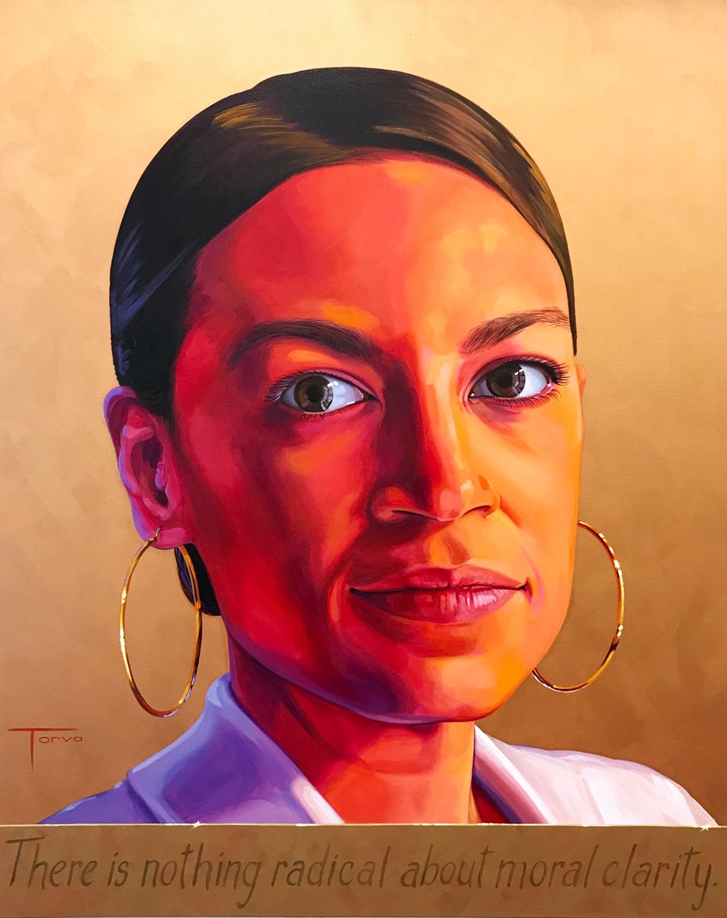 This portrait of Alexandria Ocasio-Cortez is on display at the Herberger Theater Art Gallery in Phoenix, AZ as part of an exhibition titled “In Celebration of Women: In Honor of the 100th Anniversary of the 19th Amendment.” The show will be on display from March 6 to April 26, and again from May 14 to September 30 at the Arizona Capital Museum.