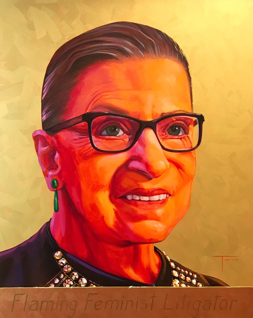TRR is grateful to be showcasing Lucretia’s work as part of our RBG tribute issue. Her portrait of AOC can be found in our archives: “AOC”: In Celebration of Women