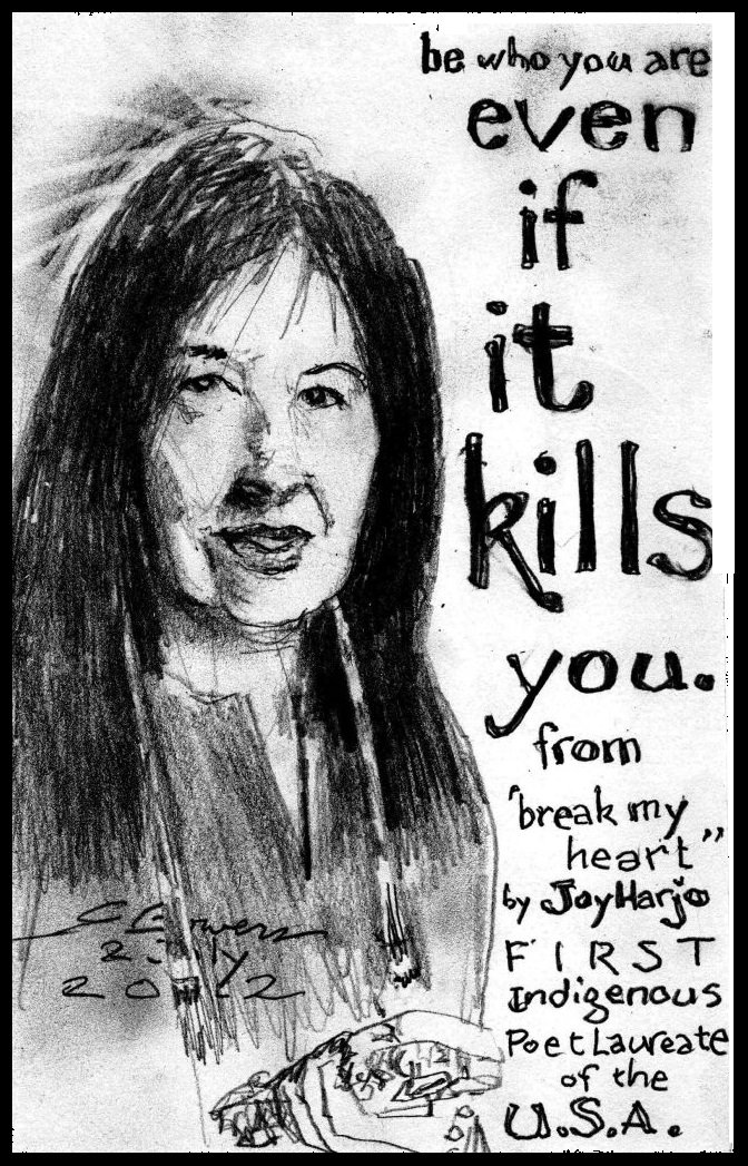 Original drawing of Joy Harjo by Gary Bowers.